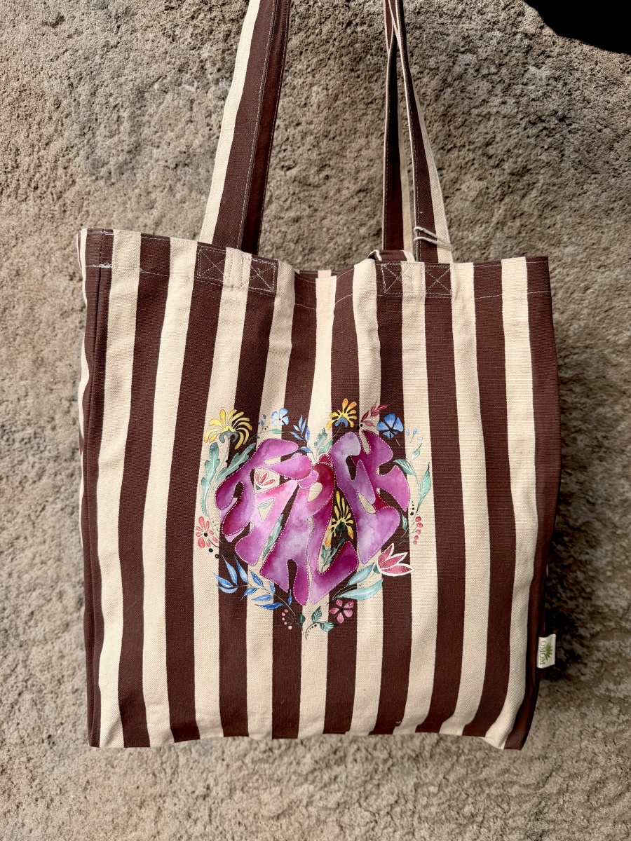 En ekologisk tygpåse med dubbla handtag med My Feldts akvareller på