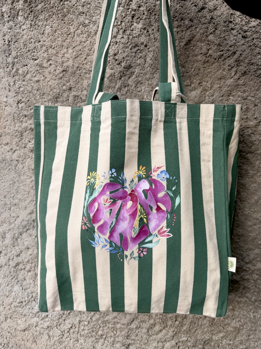En ekologisk tygpåse med dubbla handtag med My Feldts akvareller på