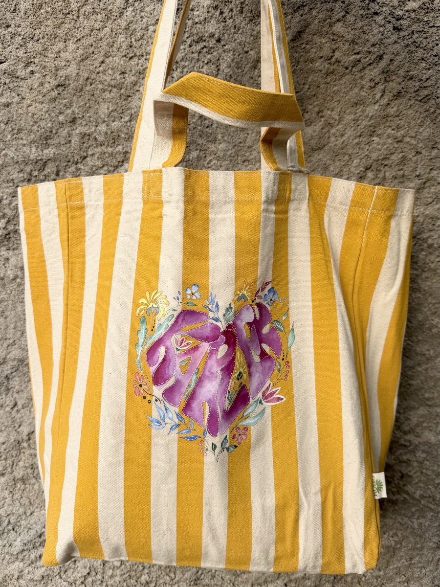En ekologisk tygpåse med dubbla handtag med My Feldts akvareller på