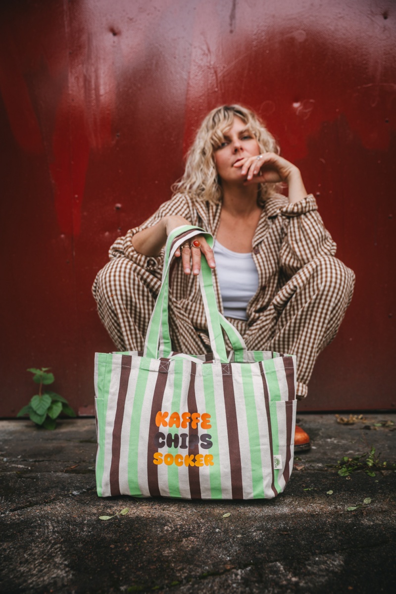 En ekologisk tygpåse i lägre modell med dubbla handtag med My Feldts Alvareller.