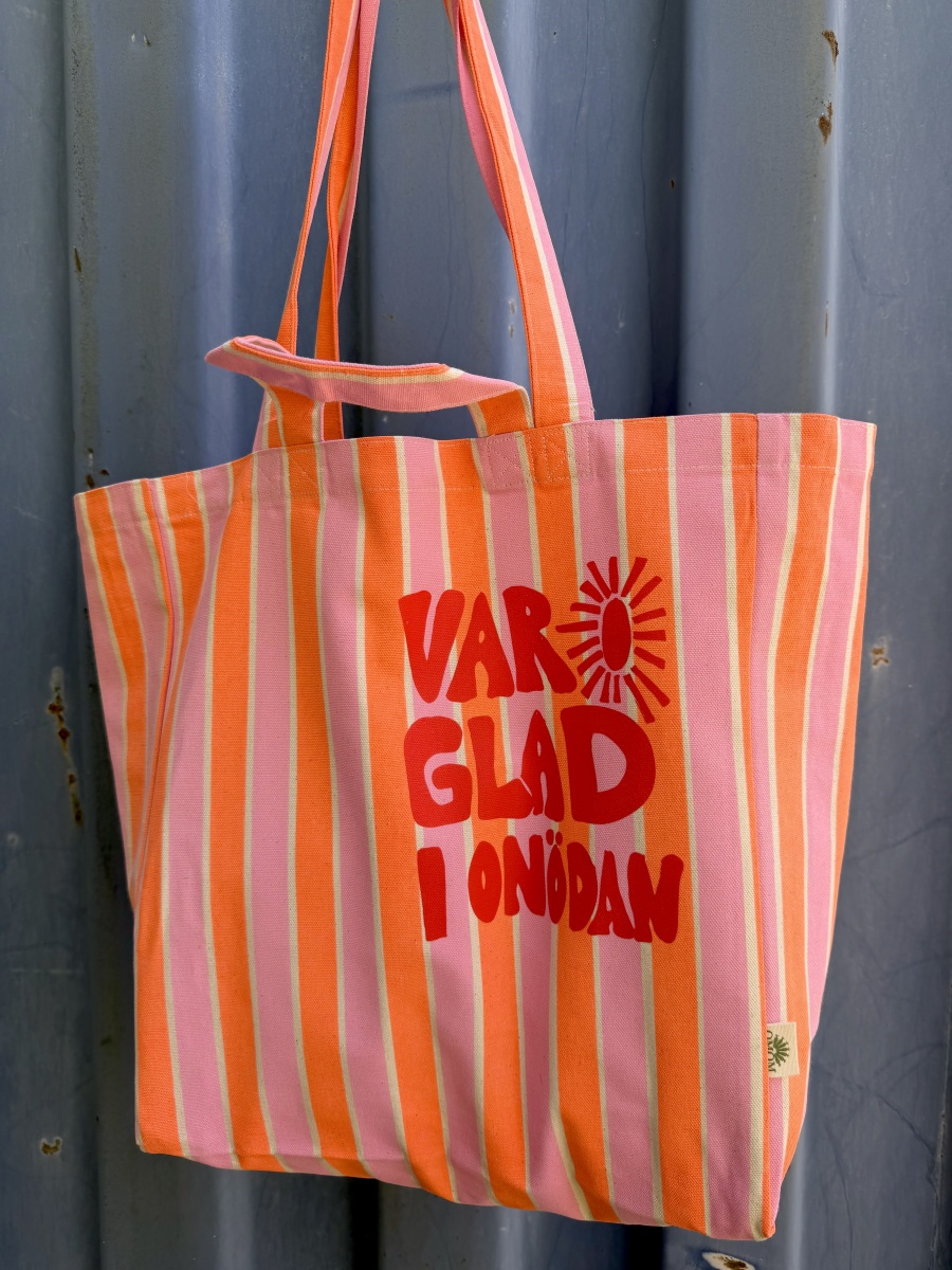 Ekologisk tygpåse rosaorangerandig - glad i onödan