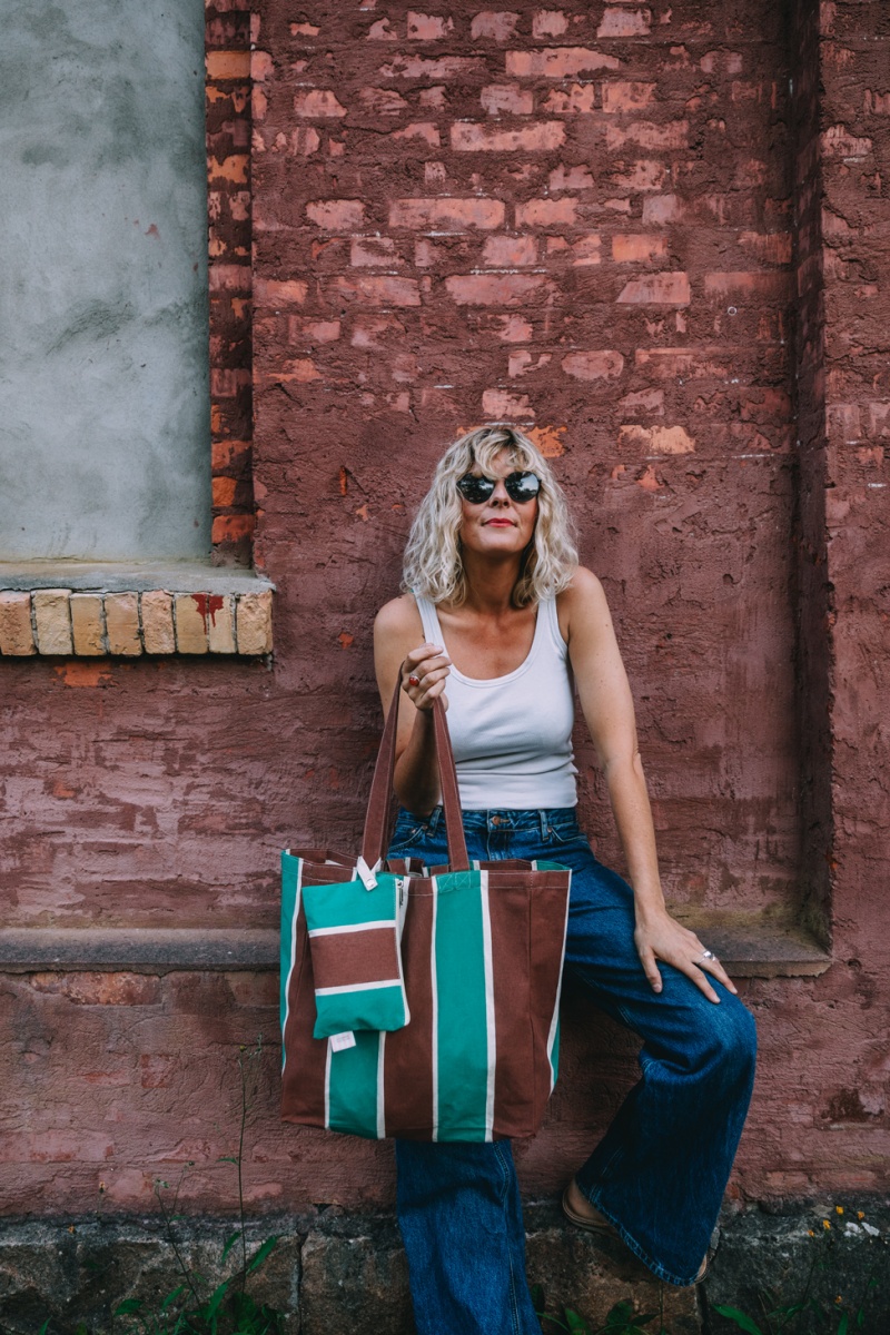 Flyttbar ficka Ekologisk -grön/brunrandig