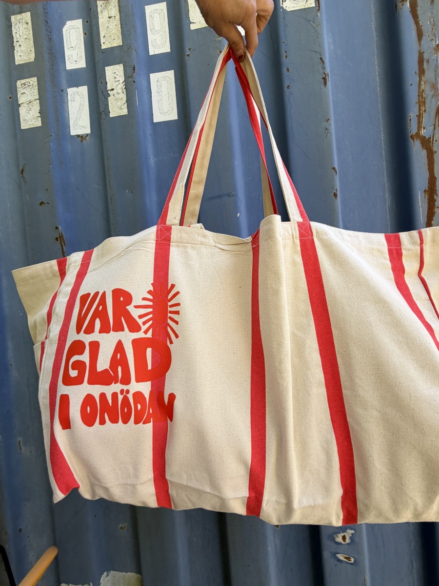 Jättestor ekologisk tygpåse randig - var glad i onödan