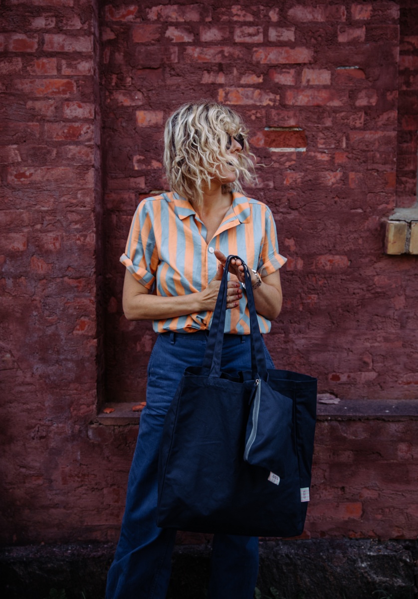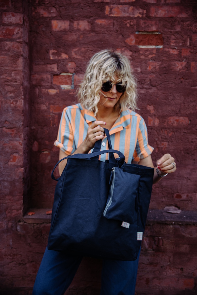 En ekologisk tygkasse med botten som ersätter butikernas pappåsar storleksmässigt.