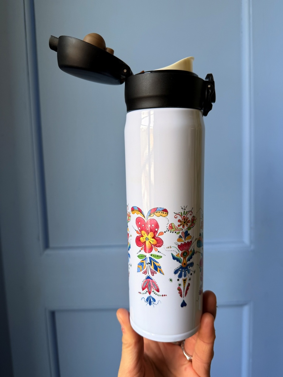 Termosen är bränd för hand, en och en med miljövänliga färger. Bränns i Halmstad.
