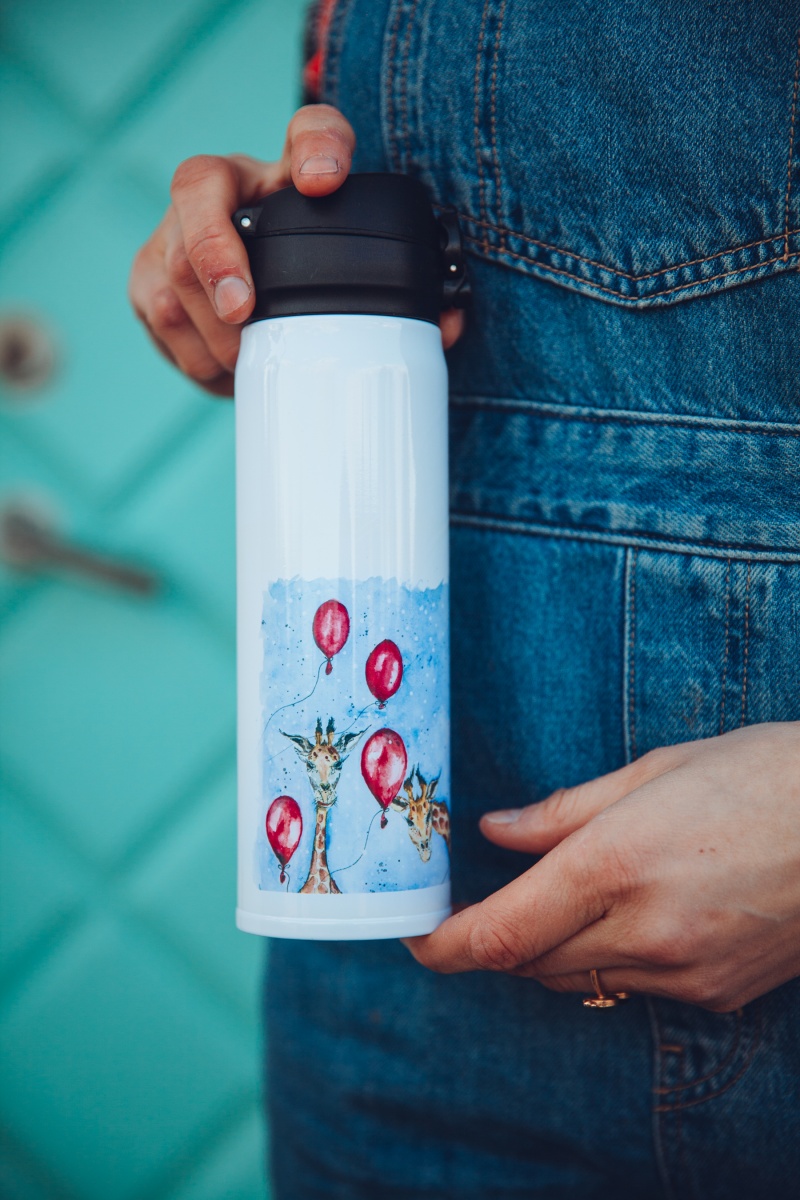 Flaskan kan diskas i maskin och korken/locket och packningarna för hand. Termosen håller kyla och värme. Rymmer 400 ml