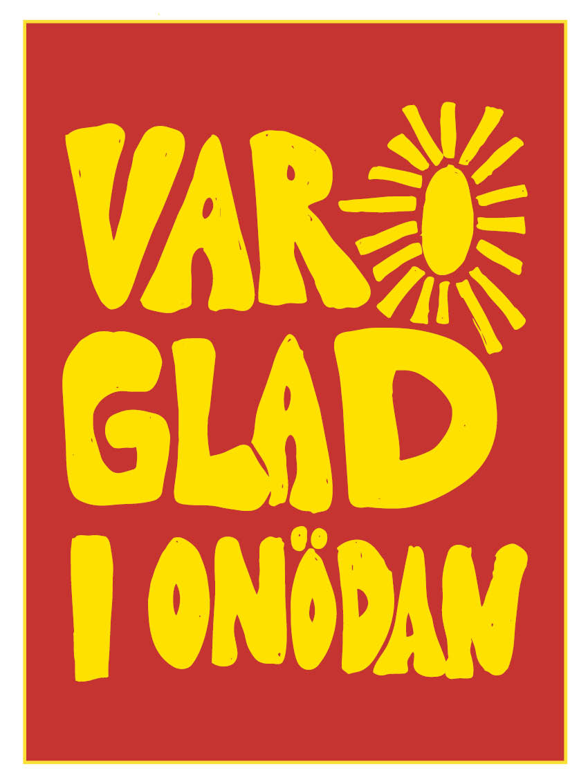 Vykort a6 glad i onödan röd/gul